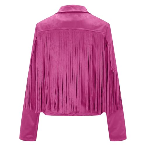 Women's Suede Fringe Jacket Trendy Long Sleeve Leather Coat Fashion Cropped Jacket Western Outfits with Tassel