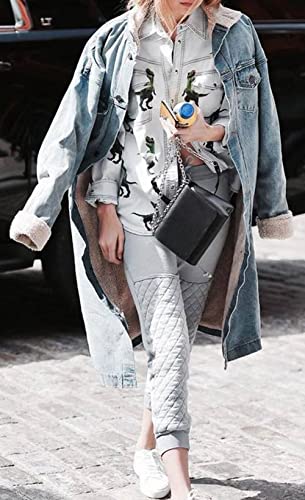Fabric type: FleeceCare instructions: Hand Wash OnlyOrigin: ImportedButton up closure/ Loose fitMaterial: Denim fabric, cotton. Fleece lined. Thick, chunky, heated and insulated to wear in winter.Features: Turndown lapel/ Sherpa fleece lined/ Long sleeves/ Patchwork style/ 2 Chest pockets and 2 side pockets/ Long length/ Denim style- light blue, dark blueVersatile jacket: This warm jacket is fitted for women as casual daily wear sherpa lined quilted denim jacket overcoat, wear to work loose mid long coat denim jean jacket, evening party thicken padded jacket outwear, night club bar long parka jacket and so on.Size: Please refer to the size chart on photo gallery before purchase Perfect for everyday use. finest materials and excellent craftsmanship ensure long-lasting durability.