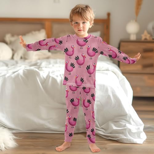 trending ! Pajama Sets Long Sleeve Pink Birds on Background velvety Comfy Sleepwear 2 Piece PJS 3-8T