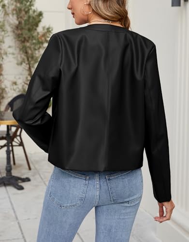 trending ! Ladyful Womens Crop Faux Leather Bomber Jacket Oversized Collarless Going Out Pu Moto Coat