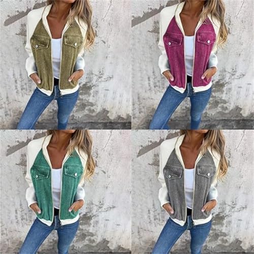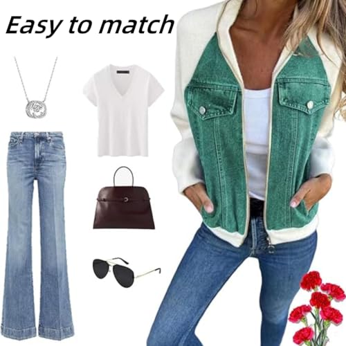Women latest Denim Patchwork Jacket,Casual Loose Long Sleeve Zipper Coats,Autumn Winter Splicing Sweatshirt Top with Pocket