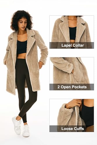 Orolay Women's Winter Fuzzy Fleece Jacket Long Sleeve Lapel Open Front Cardigan Faux Fur Coat with Pockets