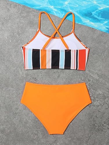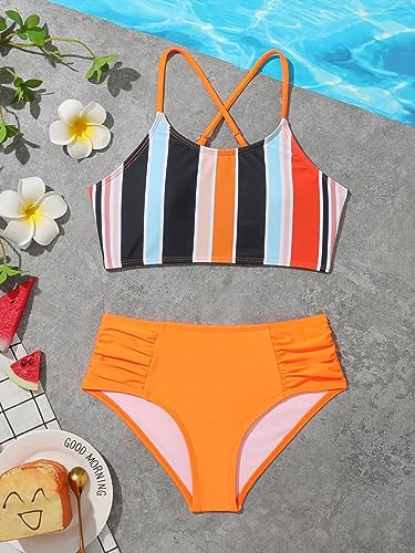 Why Choose SweatyRocks Girl's 2 Piece Bathing Suits Striped Print Spaghetti Strap Criss Cross Bikini Set High Waist Swimsuit?