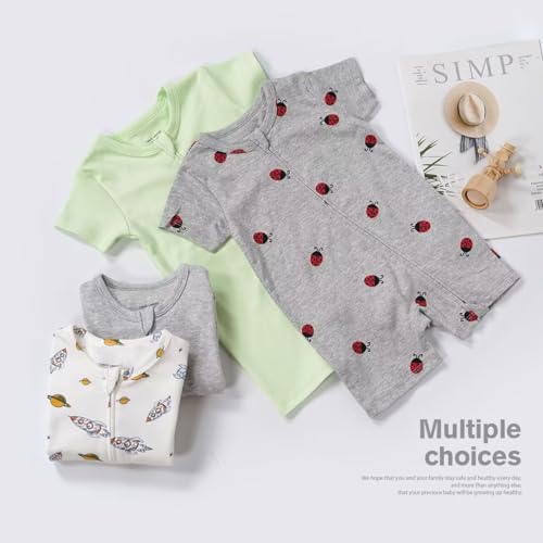 Why Choose Teach Leanbh Unisex Baby 2 Pack Pajamas Cotton Short Sleeve 2 Way Zipper Printing Soild Romper Jumpsuit Sleep and Play?