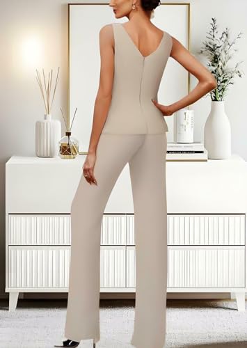 • 【 Features 】:Chiffon Mother of the Bride PantSuits decorated with Sequins zipper Lace Ruffles,collar with Scoop Neck clothes built in Bra. Suitable for weddings,Cocktail,Evening Gown,Grandmother of the Bride PantSuit,Formal Special Occasion Dress