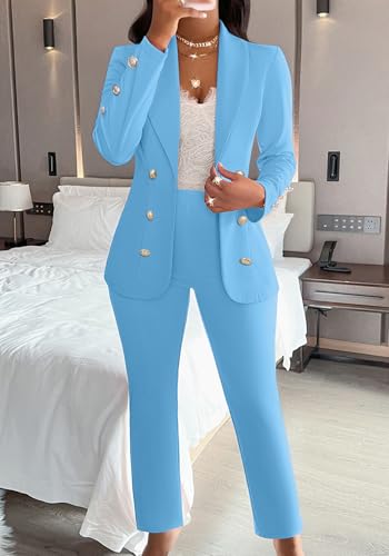 • 2 Piece Business Outfits: Long sleeve blazer set,open front blazer jacket,double-breasted decoration,elastic high waist with zippr up,long pencil pants,casual pants suit for women,office suit set for women,business pants set for women