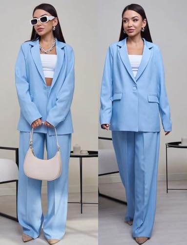 trending ! Women's Oversized Suit Casual Daily Two Pieces One Button Jacket Wide Leg Pants for Wedding