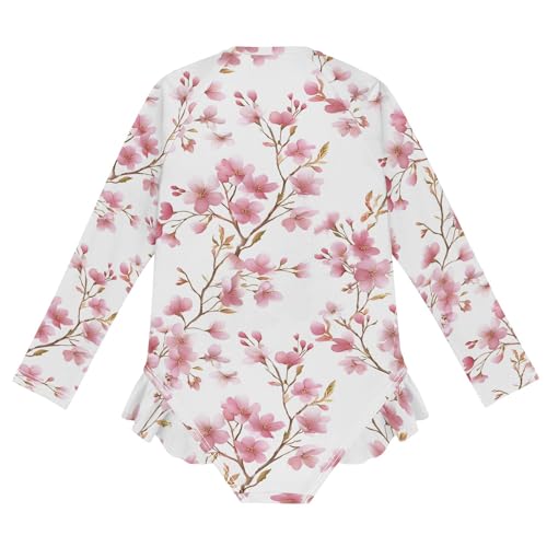 ALAZA Toddler Swimsuit Girl Bathing Suit Swimwear Rash Guard Cherry Blossoms Long Sleeve 3T