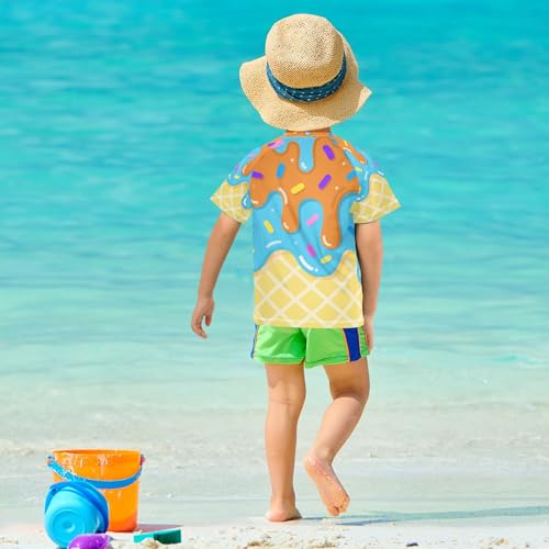 Cute Ice Cream Blue Bathing Suit Girls Sun Protection Tshirts Swimwear Beach Tops 3T