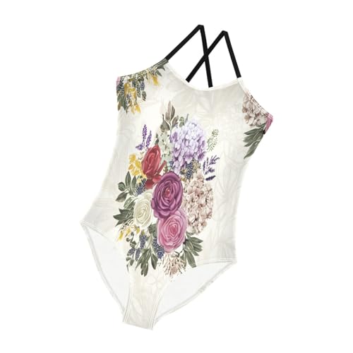 Vintage Watercolor Roses Kids Swim Suit with Adjustable Shoulder Strap, Beach Bathing Suit, 3-10