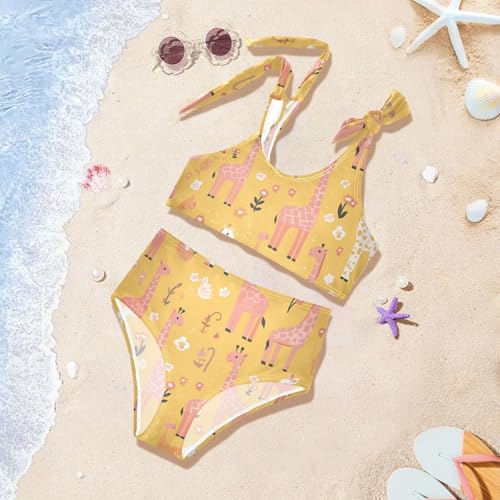 KLL Giraffe Animal Cute Cartoon Yellow Girls 2 Piece Bikini Sets rapid-Dry Beach Swimsuit Bathing Suit