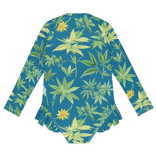 ALAZA Toddler Swimsuit Girl Bathing Suit Swimwear Rash Guard Herbs Blue Long Sleeve 3T