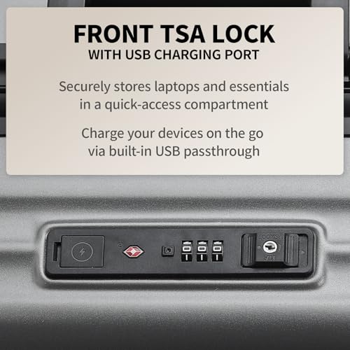 Airline Approved Size & Lightweight Build: This 20 inch carry on luggage measures 21.65 x 13.78 x 9.45, meeting most airline approved size requirements for overhead bins. Constructed with a durable aluminum frame and ABS+PC composite, this hard shell suitcase weighs only 10.36 lbs, maximizing your packing capacity without exceeding weight limits, perfect as checked="checked" luggage or travel luggageZipperless Security & Premium Durability: Features a exceptional zipperless luggage design secured by two TSA approved 007 locks (the password is 000), offering enhanced safety and effortless opening/closing compared to traditional zippers. The ultra-strong hard case luggage shell boasts a scratch-resistant texture and withstands over 300 lbs of pressure, ensuring your travel suitcase survives rigorous handlingSmart Organization & Easy Access: Stay organized with a dedicated, TSA approved laptop compartment (fits up to 17), full-closure dividers, compression straps, and a separate wet bag. The convenient front access panel lets you grab essentials like electronics or documents without opening the main compartment of this carry on suitcaseSmooth Mobility & Travel Convenience: Effortlessly maneuver your rolling luggage with 360Β° spinner wheels rigorously tested over 500 km on various terrains. Features include a built-in cup holder, luggage hook, and USB/Type-C charging ports (portable charger not included) β keeping your devices charged and hands free while traveling with this carry on luggage with wheelsAll-Terrain Wheels & After-Sales Support: Experience unmatched stability and quiet rolling, even on uneven surfaces, thanks to the high-performance wheels on this hardside luggage. The sturdy, 6 level aluminum telescopic handle provides a comfortable grip. Backed by a 3-year warranty, this small suitcase with wheels offers lasting peace of mind for frequent flyers and carry on luggage 22x14x9 airline approved journeys Perfect for everyday use. finest materials and excellent craftsmanship ensure long-lasting durability.