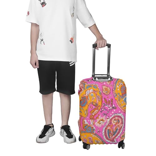trending ! Vintage Paisley Pinkcolor Luggage Covers Washable Travel Suitcase Cover Elastic Baggage Protector