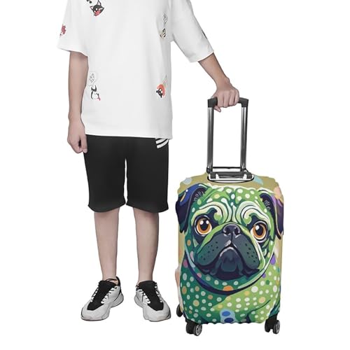 Pug Green Polka Dot Printed Luggage Cover Protector, Fits 18-32 Inch Luggage