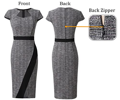 Fabric type: 95%POLYESTER,5%SPANDEX;45%COTTON,50%POLYESTER,5%SPANDEXCare instructions: Hand Wash OnlyOrigin: ImportedClosure type: ZipperSize: [Model's height 5'5, Body Measurements Bust 32.48, Waist 24.6, hips 34.45 inches, wears size XS. Each variation product has a exceptional size chart. Please follow the size chart in the product photos and choose the size based on your own body measurements before buying. Thank you!Material: Garments in different colors/patterns may use different materials, please check the listing pictures.Style: Square Neckline, Cap Sleeve, Patchwork Design, with Silver Metallic Stitching, Front Split, Slim Fit, Sheath Silhouette, Knee Length, Concealed Back Zipper.Occasion: Wear to Work Dresses for women Spring/Summer, Business, Office, Party Cocktail, Church, Dating.Garment Care: Hand Wash in cold water, Hand Wash Gently, hang or line dry. [Do not tumble dry] Perfect for everyday use. finest materials and excellent craftsmanship ensure long-lasting durability.