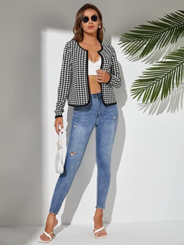 trending ! WDIRARA Women's Houndstooth Open Front Long Sleeve Plaid Work Office Elegant Jacket