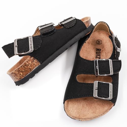 Closure type: Buckle【Cushioned Midsole】: Crafted with soft suede uppers and natural cork footbeds, these toddler sandals provide exceptional comfort that molds to your child's feet. The cushioned cork midsole absorbs impact while the deep heel cup supports proper foot alignment, keeping little feet comfortable all day long.【Adjustable & Convenient】: Adjustable Design: Featuring adjustable buckles and strap design,these kids summer sandals offer a customizable fit for growing feet. The easy-to-use adjustable design ensures a snug yet comfortable fit that stays secure during active play while being simple enough for kids to manage themselves.【Safety Design】: The lightweight EVA outsole features advanced traction patterns for superior slip resistance on any surface. Combined with the protective toe cap and ergonomic arch support, these kids cork sandals provide all-around protection for active toddlers at play.【Versatile Summer Style】: With their iconic minimalist design and premium materials, these kids slide sandals complement any summer outfit. Perfect for beach days, playground adventures,or casual wear, they transition effortlessly from outdoor activities to everyday occasions.【Quality Guaranteed】: We stand behind our products with a satisfaction guarantee. Made from durable, breathable materials with strict quality control, these toddler boys girls sandals are built to last through all your child's summer adventures. Perfect for everyday use. excellent materials and excellent craftsmanship ensure long-lasting durability.