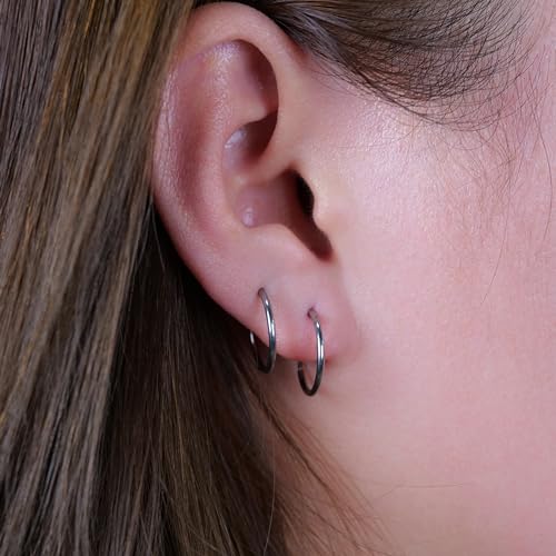 Material: TitaniumMetal type: TitaniumBack Finding: Hinged HoopEarring design: HoopGem type: No GemstoneHypoallergenic Titanium Earrings: Crafted from implant grade F136 titanium, hypoallergenic, non-allergenic, nickel-free, lead-free, ensuring your skin remains irritation-freeLong-lasting and Comfortable: Anti-oxidant, colorfast, maintains their shine and color over time. Comfortable to wear for long periods, even when sleepingClassical and Timeless: Dainty and cute cartilage round hoop design. Inner diameter: 8 mm/10 mm/12 mm, width: 1.2 mm with CZ stones, you'll be more attractive and elegant when wearing this huggie earrings. Can be used as nose rings, tragus ear piercing jewelryExquisite Package and Ideal Gift: Beautifully packaged, an ideal gift for all-age women on various occasions, such as Mother's Day, anniversaries or birthday, convey your thoughtfulness and careExcellent Customer Service: If you have any questions with limerencia titanium earrings please feel free to contact us, we will be 24 hours at your service. It is very important to us that you have a wonderful experience and love our jewelry Perfect for everyday use. excellent materials and excellent craftsmanship ensure long-lasting durability.
