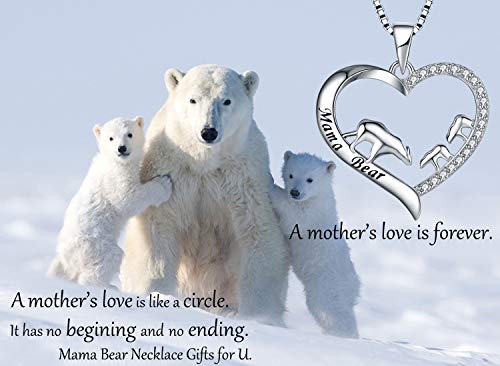925 Sterling Silver Mom Necklace fancy Heart Pendant Mama Bear Panda Elephant Sloth Animal Necklaces Mother Son Daughter Jewelry Gifts for Women Mum Family