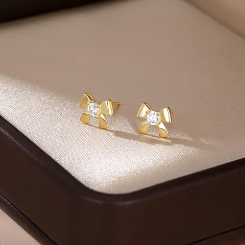More information about SLUYNZ Solid 925 Sterling Silver CZ Bow Earrings Stud for Women Teens Small Bowknot Stud Earrings