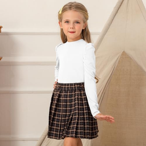 Girls Blouses Long Sleeve T Shirts for Girls Tops Tees Puff Round Neck Rib Kids Tshirt White Beige Caramel