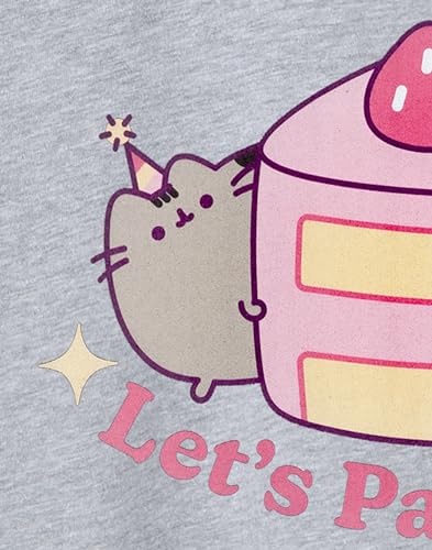 Pusheen Girls Party T-Shirt Lets Pawty Birthday Cake Tee Cute Kitty Short Sleeve Teen Top Cat Apparel Adorable Merchandise