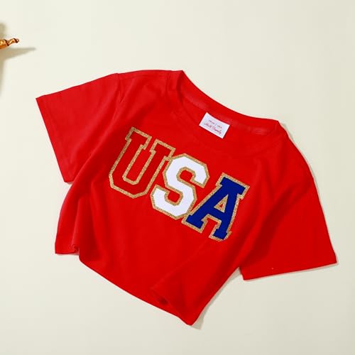 More information about HH Family 4th of July Shirts for Girls Patriotic Crop Top USA Flag Letters Short Sleeve Tops