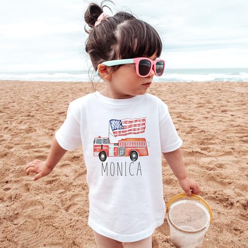 More information about Personalized Fire Truck Firefighter Kids Shirt - Custom Kids Name Fire Engine 4th Of July Outfit - Red White & Blue America USA - Boho Natural Toddler & Youth Shirts