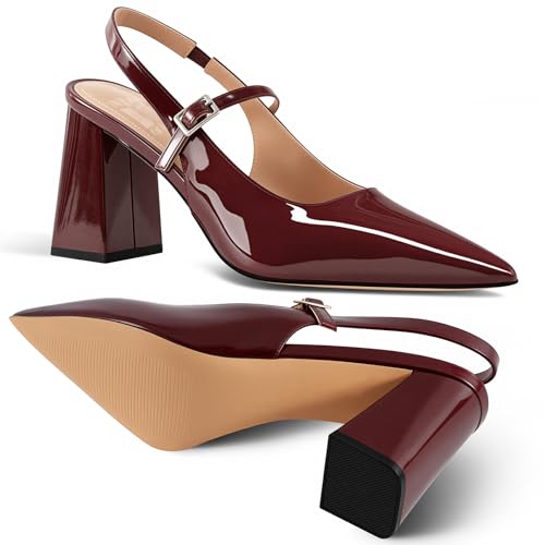 heelchic Women's Pumps Slingback Chunky Heels Closed Pointed Toe relaxing Low Block Heel Slip-on Sandals Wedding Party Dress Shoes Work Pumps