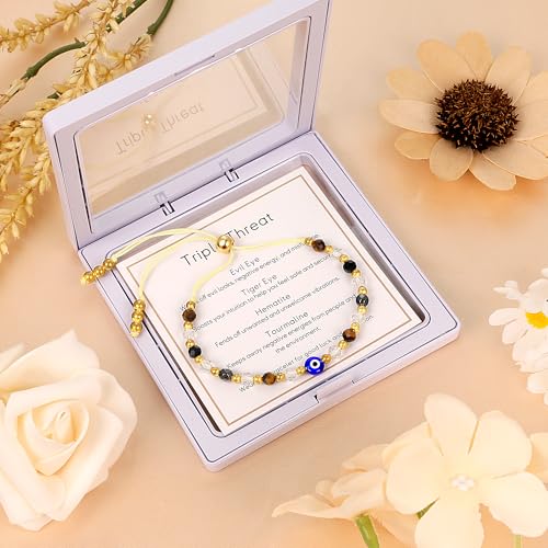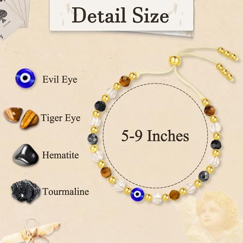 Material: CrystalClasp type: No ClaspChain type: Bead ChainTriple Protection: This evil eye bracelet is inspired by the concept of 'protection'. It creates a strong protective barrier for the wearer, helping women to ward off daily stress and negative distractions. This beaded bracelet is suitable for people in the workplace, business or stress, and is meant to break the negative energy and attract good luck.Material: This crystal bracelet is made of evil eye, tiger eye, hematite, and black tourmaline. Each natural stone is hand-polished to preserve its natural texture and energetic character. The durable elastic cord design is soft to wear and adjustable from 5-9 inches.Function: This protection bracelet is a 'natural amulet' for women who spend a lot of time in stressful environments. Its color is discreet and can be worn with sports and casual wear.Gifts for Her: This blessing bracelet can serve as a heart-warming gift for your daughter, wife, mother or friend to bring her energy and luck. It can also be used as a holiday gift, such as Mother's Day, Christmas, Anniversaries, etc.Customer Service: Hey, SmileBelle, smile your way. Your satisfaction is utmost important for our brand. If you have any questions about the Protection Bracelet for Women at anytime, please let us know. Perfect for everyday use. excellent materials and excellent craftsmanship ensure long-lasting durability.