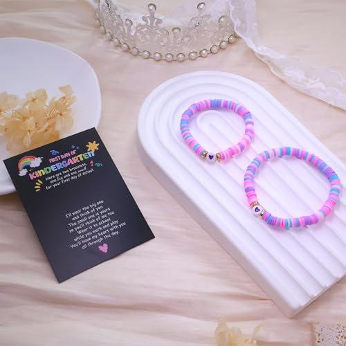 Metal type: Stainless SteelChain type: Bead ChainGem type: No gemstone【First Day of Kindergarten Bracelet】 -- A great little gift for your little one who is starting a new adventure. Help your girl get rid of separation anxiety with this matching heart bracelet, reminding mom to always think of her and that mom's heart will always be with her when she's at school.【Perfect Size】 -- The heart bracelet is made of high-quality elastic string. The big one max length is 7.87, and the small one max length is 6.75, fit for most wrists. Don't worry about the size.【Kindergarten Bracelet Mommy and Me】 -- These cute bracelets come with a greeting card and a velvet bag. A great gift for mommy and daughter on your first day of kindergarten.【High-Quality Materials】 -- The heart bracelet is made of high-quality clay beads and elastic string. Hypoallergenic, no harm to your skin. The stunning bracelet is suitable for daily wear.【After-Sales Service】 -- If there is any question about your purchase, please contact us on Amazon in time. We will reply to you within 24 hours and give you a satisfactory answer. Perfect for everyday use. finest materials and excellent craftsmanship ensure long-lasting durability.