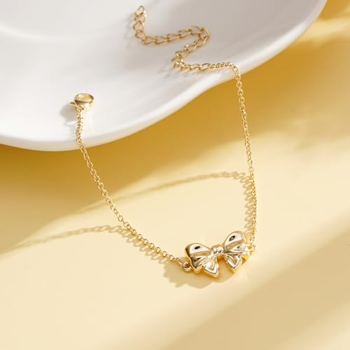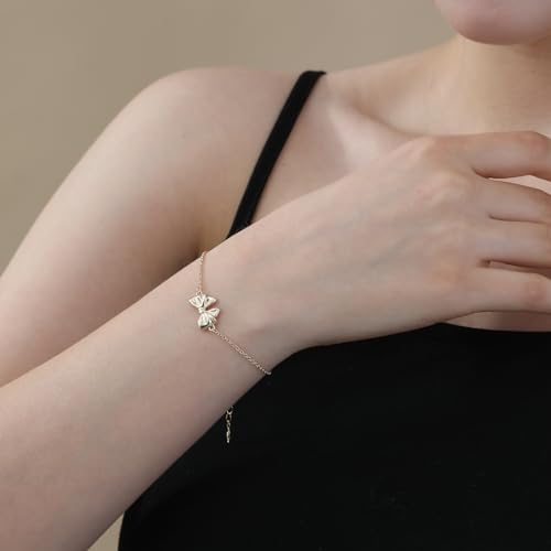 Ascona Gold/Silver Bow Bracelet for Women, Adjustable Dainty Ribbon Bow Bracelet Jewelry