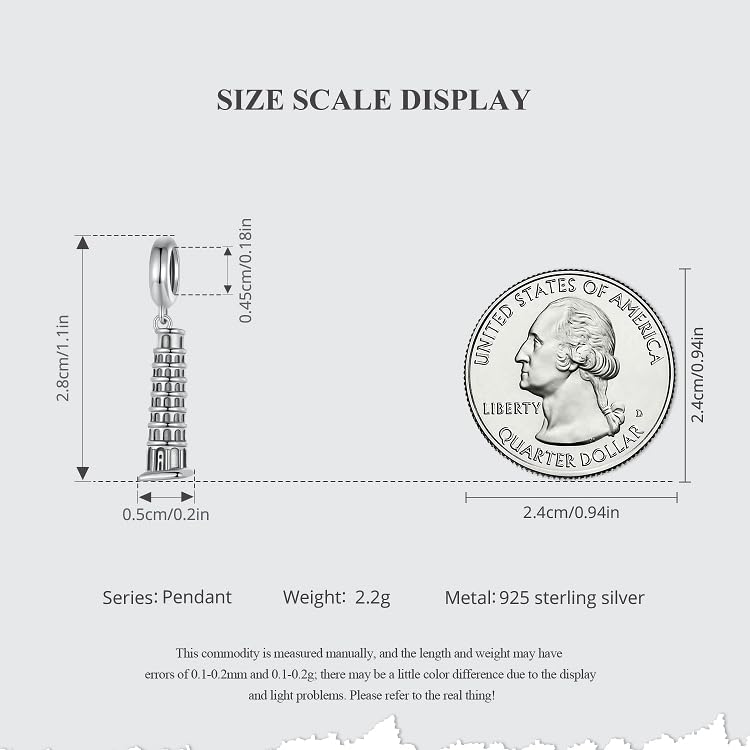More information about Leaning Tower of Pisa Pendant Charm 925 Sterling Silver Charm Fits For Pandora Bracelet Necklace,SCC2876