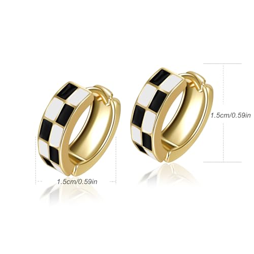 trending ! Chic Checker Small Hoop Cartilage Earrings Teacher Earrings for Women;White Black Enamel Hypoallergenic Hooped Gifts Gold and Silver tone