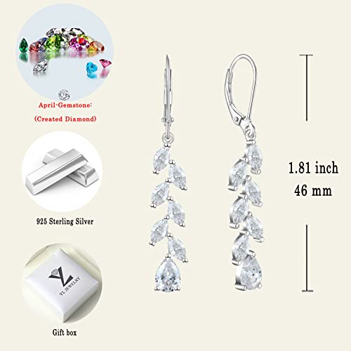 trending ! YL Wedding Dangle Earrings for Brides Bridesmaid Teardrop Birthstone Long Bridal Leverback Earrings Jewelry for Women