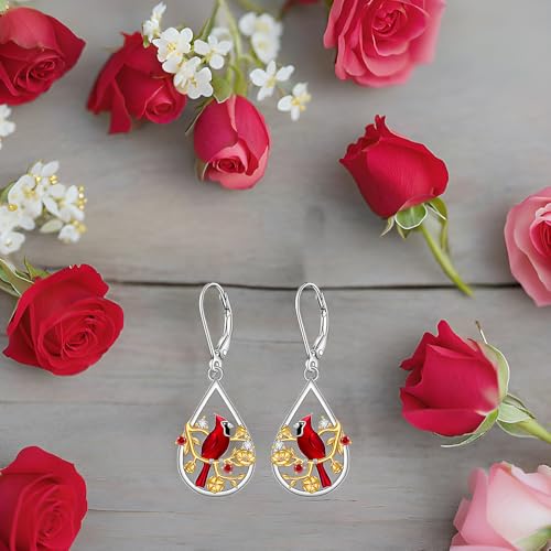trending ! Red Cardinal Gifts Cardinal Earrings for Women Dangle Sterling Silver Bird Memorial Animal Earrings Valentines Day Jewelry