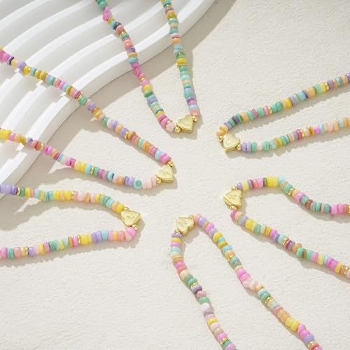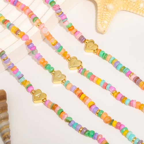 trending ! Initial Necklaces,14k Gold Plated A-Z Personized Custom Heart Letter Pendant Colorful Boho Bead Necklace Dainty Gold Necklace Summer Jewelry for Birthday Gift