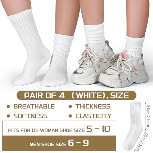 trending ! Zoooyawn 4 Pair Slouch Socks Cotton Baggy Scrunched Crew Socks Casual Slouchy Tube Neutral Aesthetic Ribbed Stacked Accessory