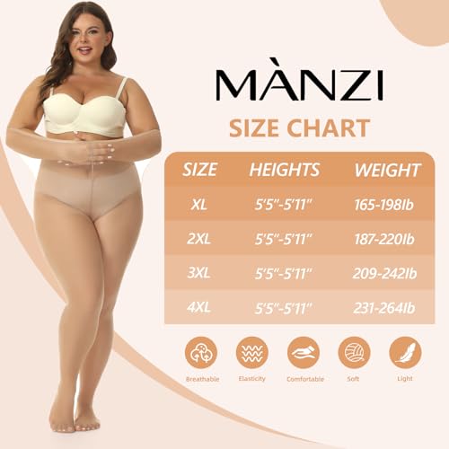 • Plus Size Tights:MANZI 20D sheer pantyhose are specially designed for plump women and and is available in sizes XL to 4XL.