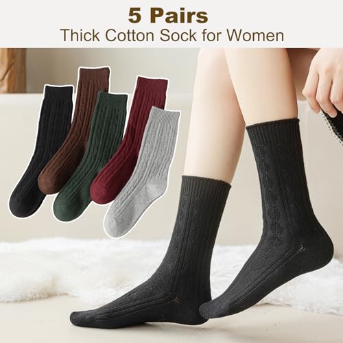trending ! Caudblor 5Pack Winter Cotton Crew Sock For Women,Size 5-10(36-40)