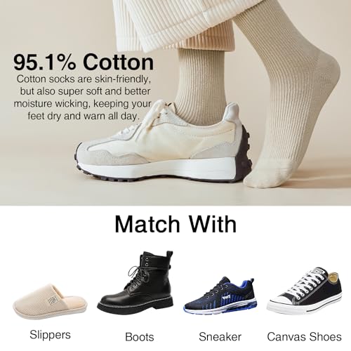 • cozy Material: Made from high-quality cotton socks, these women socks are breathable, smooth, and durable to keep you comfortable all day long. The ribbed design ensures a secure fit, while also adding a touch of style to your outfit.