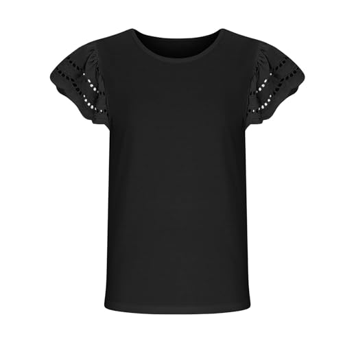 Girls Summer Tops Round Neck Flutter Sleeve Eyelet Hollow Out Embroidered Blouses Teens Girls Dressy Casual Shirts