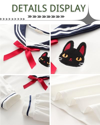 • FEATURES: Oversized striped sailor collar, long sleeve, funny black cat embroidery pattern, red bow decoration, regular fit, women's preppy blouse, Japanese schoolgirl uniform, kawaii aesthetic shirt.