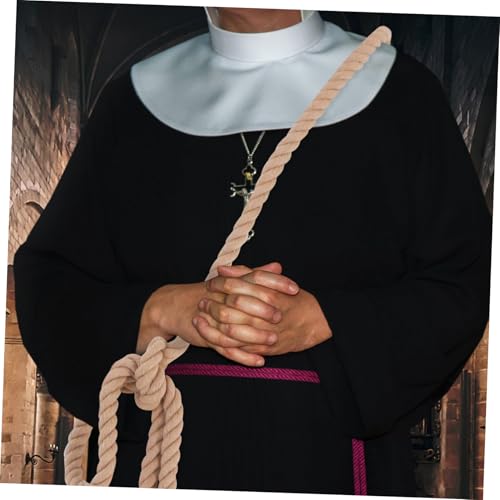 trending ! Cotton Linen Gothic Pastor Waist Belt Long Braided Robe Belt for Men Cosplay Performance Costume Accessory Rustic Dark Brown Waistband