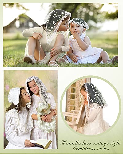 Mantveil Girl's First Communion Veil: White Lace Mantilla Head Coverings Latin Mass Church Veil for Catholic Baptism