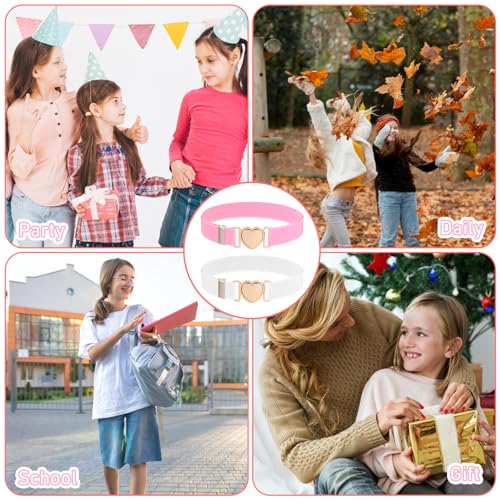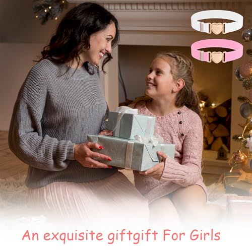 2 Pcs Elastic Belts for Toddler Kids Adjustable Girls Teens Stretch Belts with Heart Buckle for Pants Jeans Dress