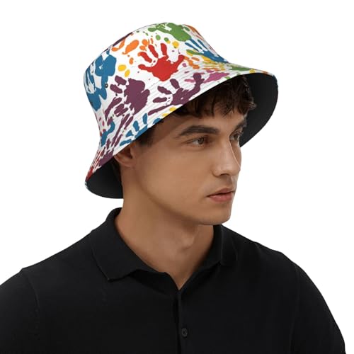 Fabric type: Polyester twill fabricClosure type: Double RingFit type: WesternKids Hand Print Comfortable And Breathable: Made From Smooth And Soft Cotton, It Provides Excellent Uv Protection While Keeping You Cool And Comfortable. Suitable For All Kinds Of Clothing.exceptional Design: Fashion Pattern All Over This Bucket Hat Makes You More Attractive And Charming In The Crowd. It Is Perfect For Travel, Beach, Vacation, Trip, Outdoor Activities, Street Strolling, And Fishing For Sun Protection.Instructions On Hat Lining: For Darker Patterns, The Hat Lining Uses Black Edging Tape, And For Lighter Patterns, The Hat Lining Uses White Edging Tape.Unisex Design: This Bucket Hat Fits Both Women And Men, Girls And Boys. One Size Fits Most With A Flat Top Crown And Short Brim, Making It Extremely Versatile.Great Gift: Ideal For Mother'S Day, Father'S Day, Birthdays, Anniversaries, Back To School, Thanksgiving, Christmas, New Year, And More. Perfect for everyday use. finest materials and excellent craftsmanship ensure long-lasting durability.