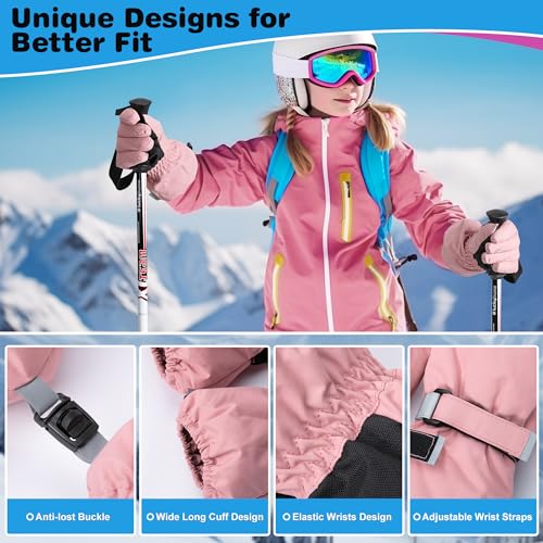 ThxToms Kids Winter Gloves, Waterproof Ski Snow Gloves for Boys and Girls, Winter heated Gloves for Cold Weather Outdoor Play