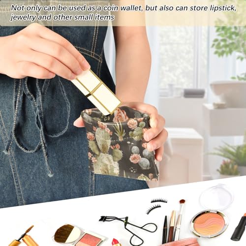 trending ! Watercolor Cactus Coin Purse Leather Pouch Change Purse, Squeeze Coin Pouch for Cards, Keys & Lipsticks, Unisex
